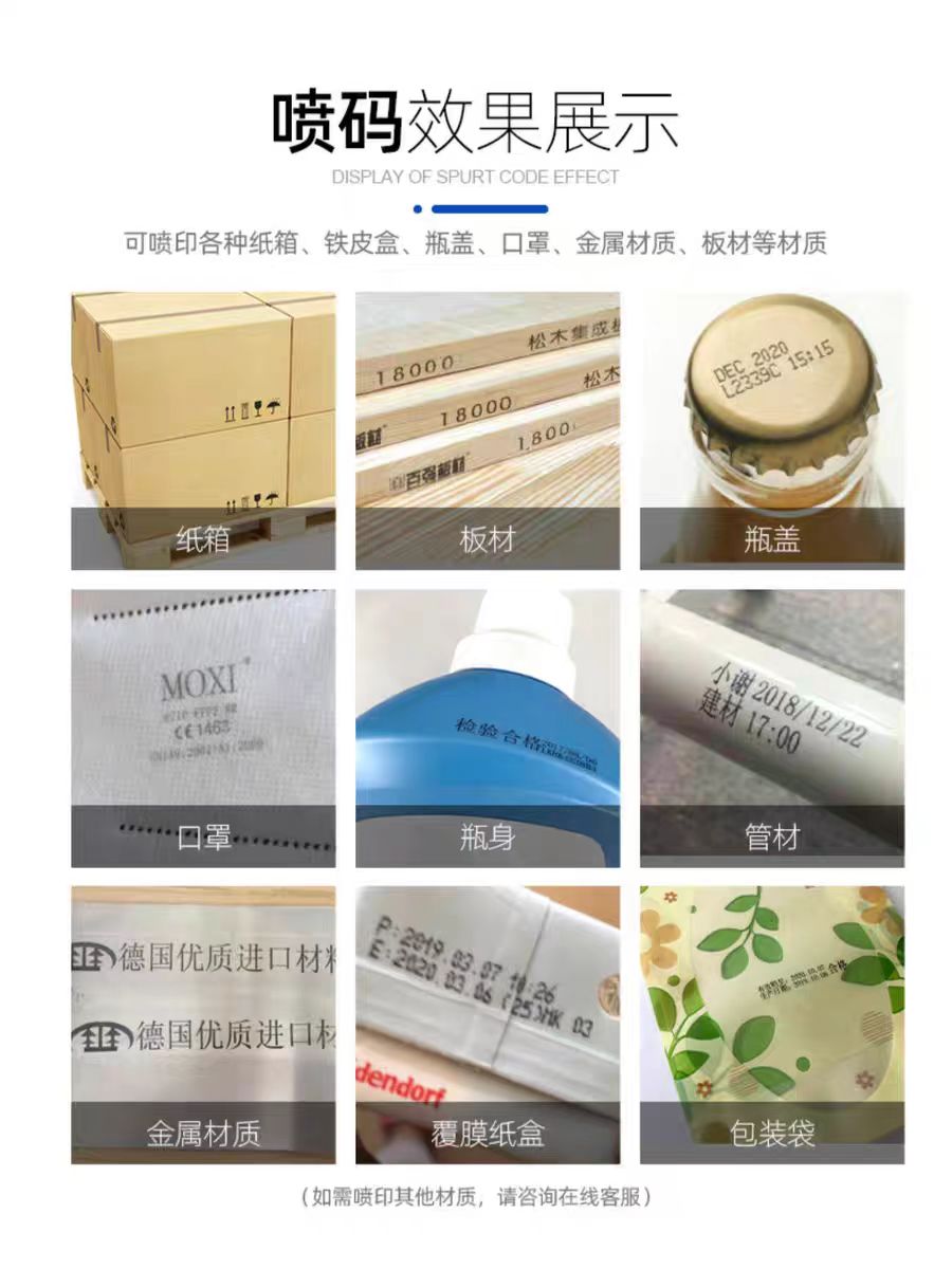 在線(xiàn)噴碼機(jī)噴印實(shí)體、點(diǎn)陣字體,日期、文字圖片、可變序列號(hào),廣泛應(yīng)用于食品、飲料、醫(yī)藥、日化、電子、汽車(chē)配件等多個(gè)行業(yè)。